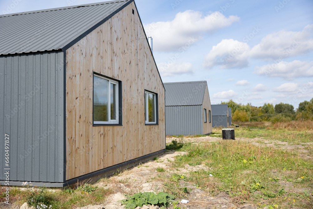 houses in Ukraine built for people who lost their homes. Houses for displaced people in the Chernigov region