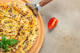 Snail pie borek with meat on a wooden board, Restaurant menu, dieting, cookbook recipe top view