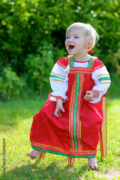 Portrait of little girl in traditional russian dress