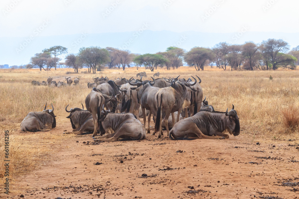Herd of blue wildebeest (Connochaetes taurinus) in Tarangire National Park, Tanzania
