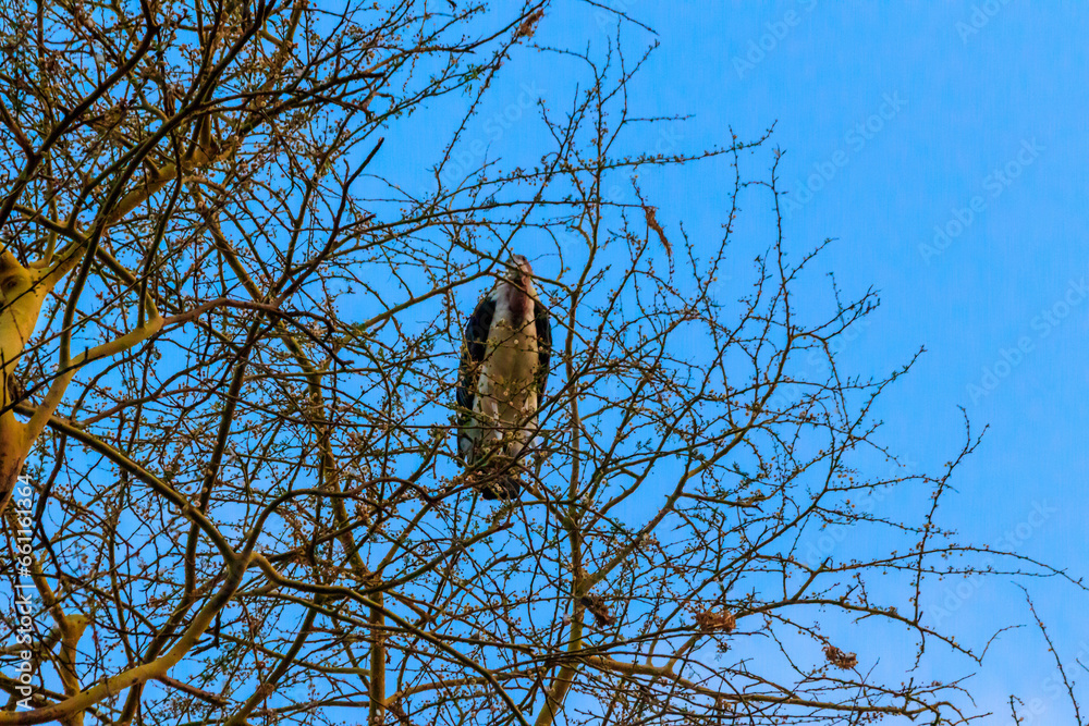 Marabou stork (Leptoptilos crumeniferus) on a tree