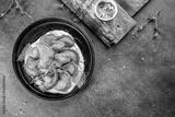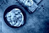 Dumplings with sour cream sauce. fried varenyky, vareniki, pierogi, pyrohy with filling, banner, menu, recipe place for text, top view
