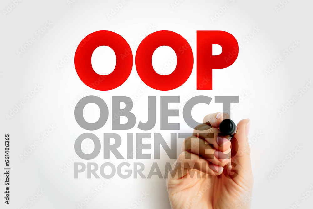 OOP Object-oriented programming - based on the concept of objects, which can contain data and code, acronym text concept background