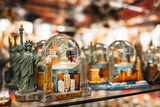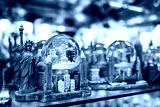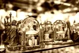 Famous traditional gifts and souvenirs Statue of Liberty with American flag in a store in Manhattan, New York. USA