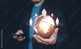 Businessman with percentage sign and arrow up, financial growth, interest rate increase, inflation, high price and tax rise concept