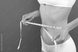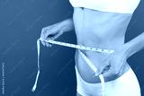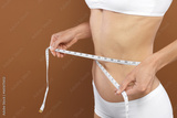 Slim woman measuring waist with tape on brown background, closeup and space for text. Weight loss