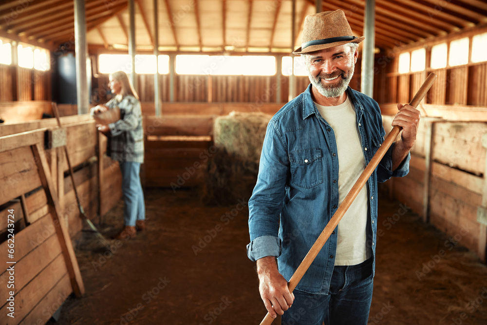 Mature couple working on the farm