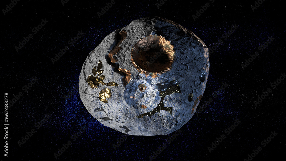 The golden asteroid, 16 Psyche is a large M-type asteroid, rich in metal.