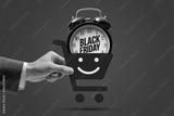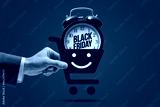 Black Friday sale: customer holding a shopping cart icon with alarm clock