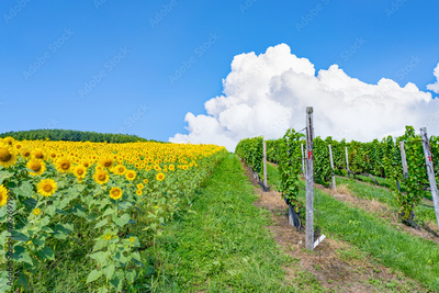 夏の北海道美瑛・富良野 ひまわり畑とワイン用ぶどう畑