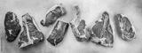 Black angus prime meat set for grilling with fresh herbs, spices. Long banner format. top view