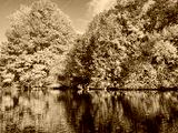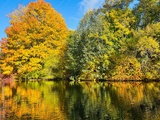 Autumn trees reflection on the pond surface, natural colors of autumn trees