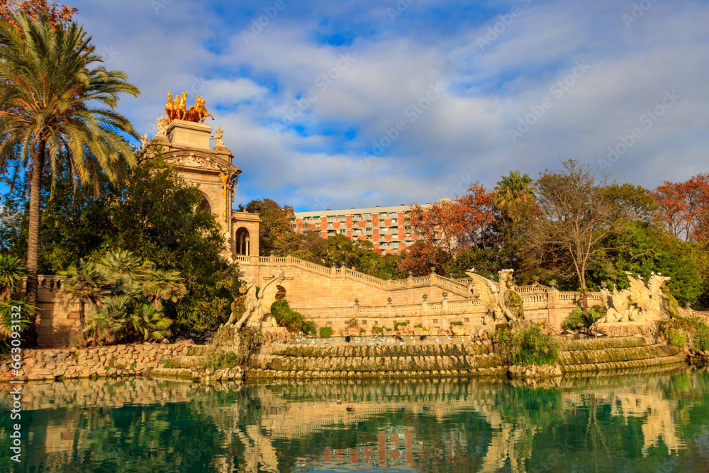 Cascada Monumental fountain in Ciutadella park in Barcelona, Spain