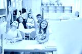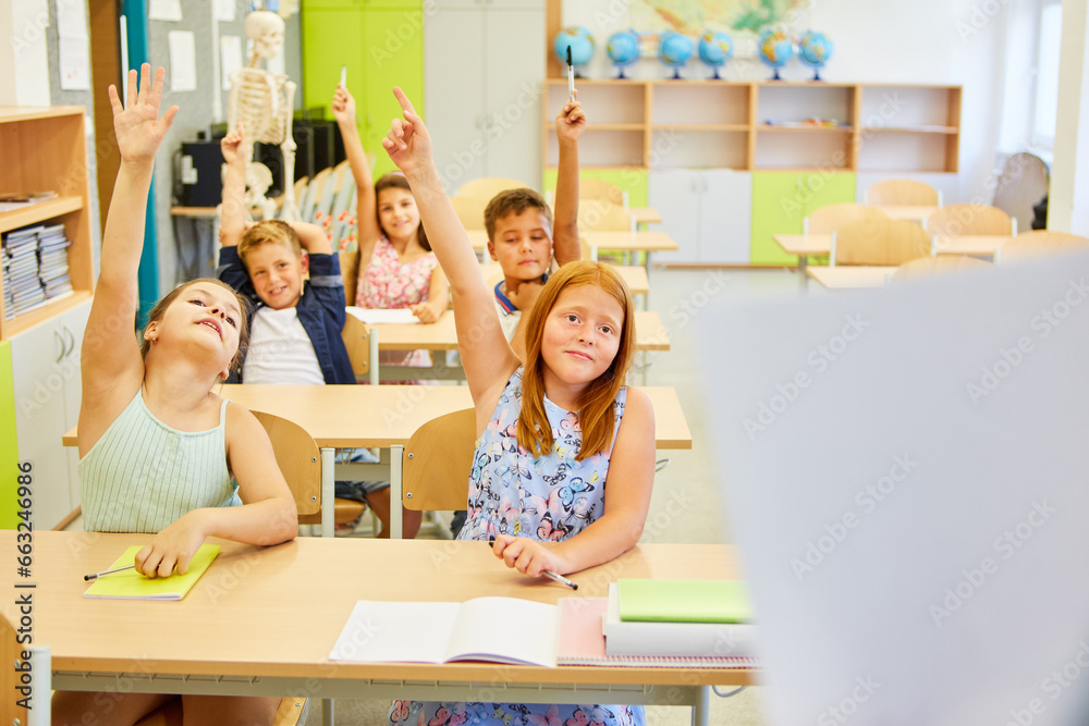Kids answering while sitting in classroom