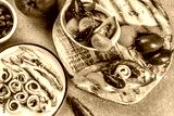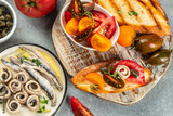 bruschetta with tomatoes, anchovies, Restaurant menu, dieting, cookbook recipe top view