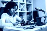 Smart Young African American Schoolgirl is Studying Electronics and Soldering Wires and Circuit Boards in Her Science Hobby Robotics Project. Girl is Working on a Robot in Her Room. Education Concept.