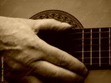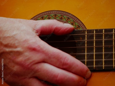 Musician playing acoustic guitar close up shot