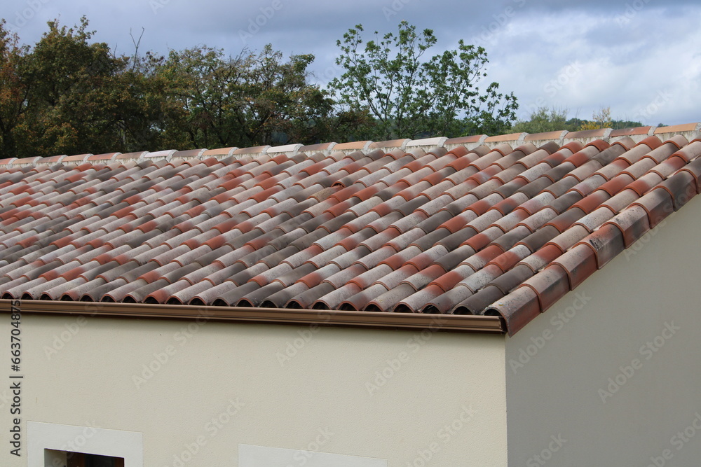 Toiture en tuiles canal ou romane et gouttière en zinc