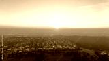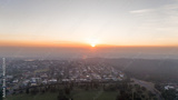 Aerial drone landscapes at sunrise over City beach in Perth with the city skyline in the background