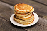 Delicious pancakes on a wooden table