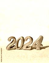 New Year 2024 holiday concept. festive blue color numbers 2024 close up on light silver shiny abstract glittering background close up. new year symbol. element for design.