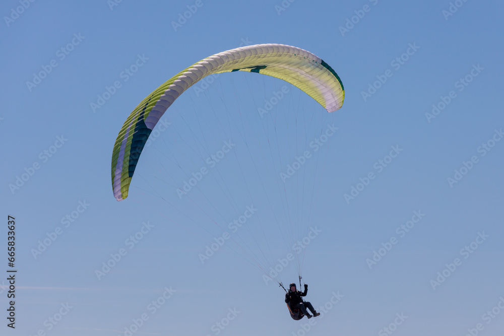 Paraglider Soaring in a Blue Sky