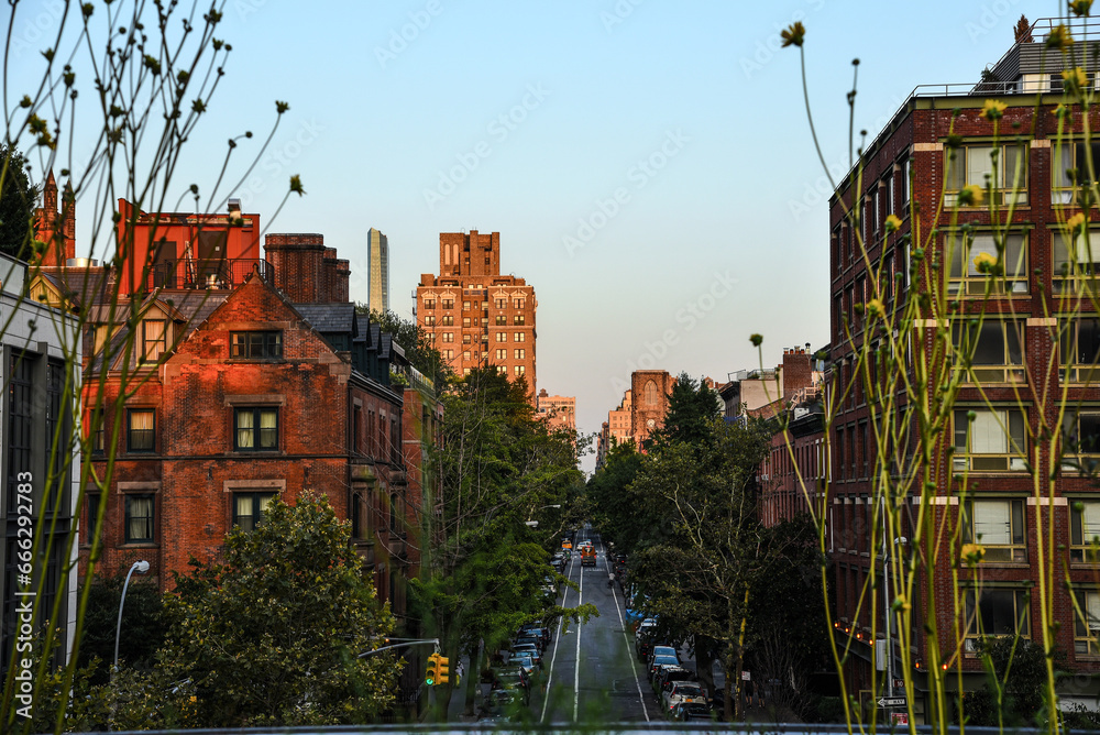 Chelsea Neighborhood Cityscape seen from the High Line Park - Manhattan, New York City