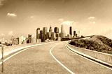 Asphalt highway and city skyline with modern buildings scenery in Guangzhou, Guangdong Province, China.