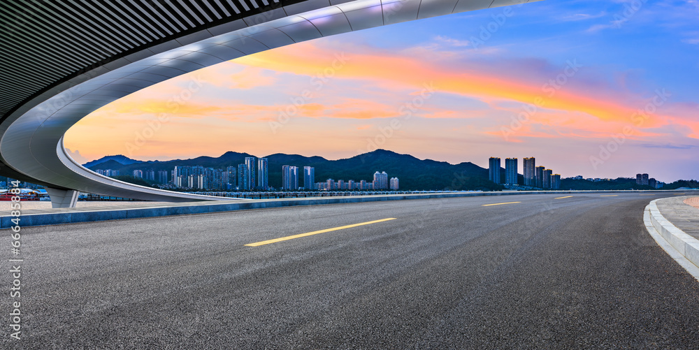 Highway road and skyline at sunset