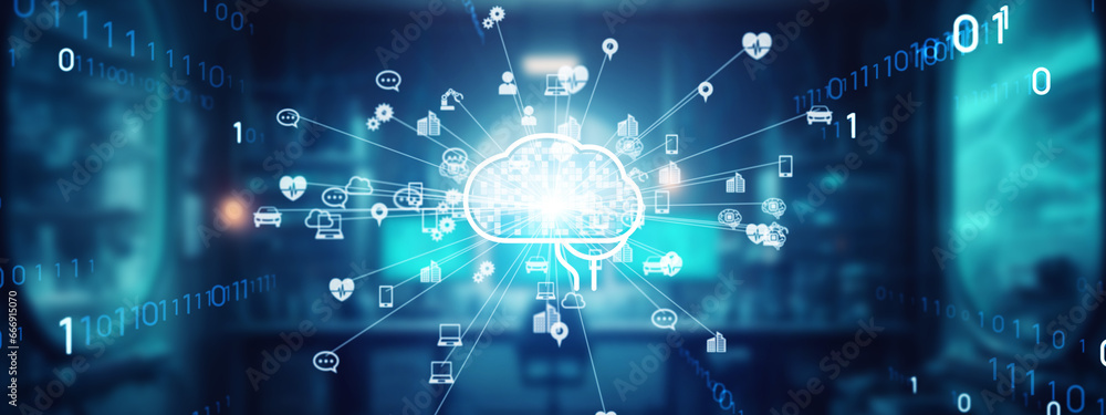 Group of people working in office and AI (Artificial Intelligence) concept.