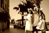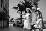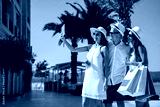 Vacation, travel, technology, smart phone and people concept. Friends having fun, enjoying shopping