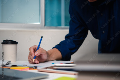 Businessman chart analysis document work financial plan marketing with laptop
