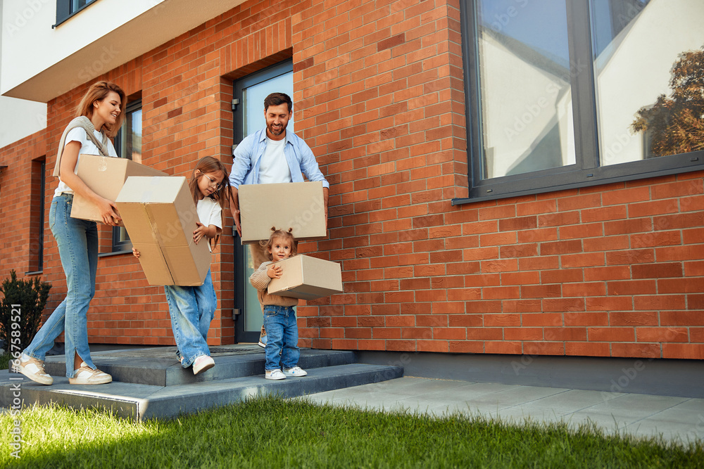 Moving, buying a home. Family shooting.