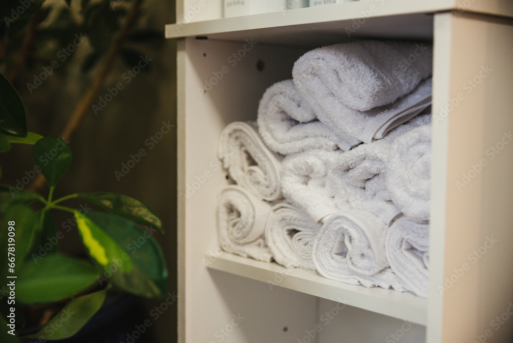 Stacked towels in a spa environment