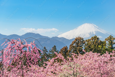松田町 青空に映える春の花々と冠雪した富士山【神奈川県】 Spring flowers and Mt. Fuji shining in the blue sky - Kanagawa, Japan