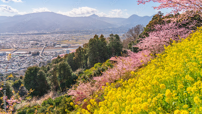 松田町の春景色 丘の上から望む春の花々と麓の町並み【神奈川県】 Spring scenery of Matsuda Town - Kanagawa, Japan