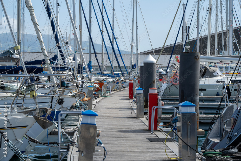 Sailboats in the marina of Ponta Delgada in Sao Miguel Island in the Azores.