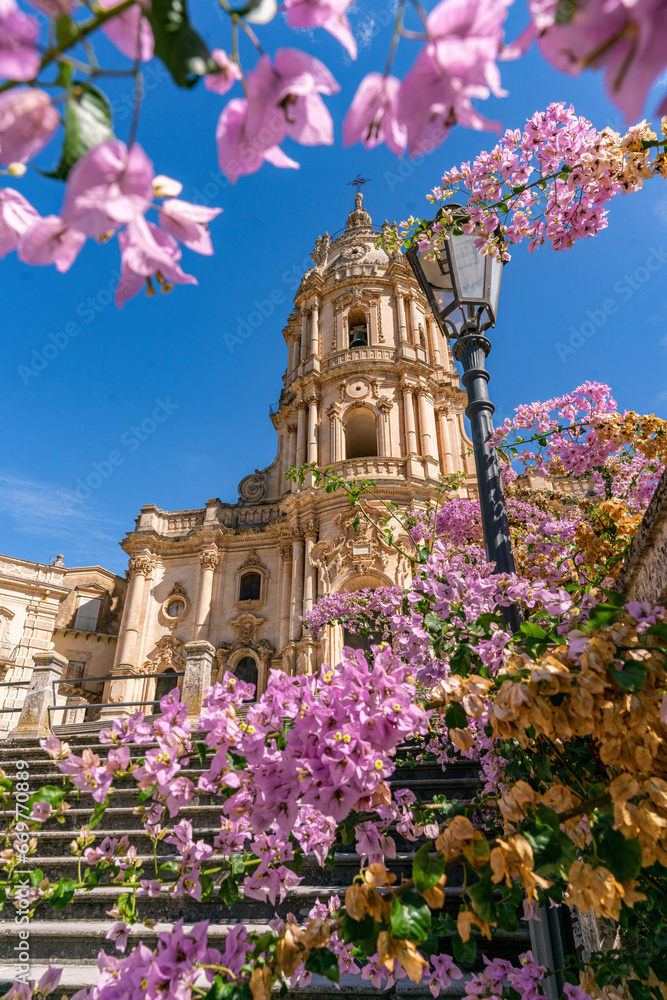 The narrow streets of the baroque style city of Modica, Sicily, Italy