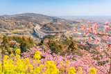 松田町の春景色 丘の上から望む春の花々と麓の町並み【神奈川県】 Spring scenery of Matsuda Town - Kanagawa, Japan