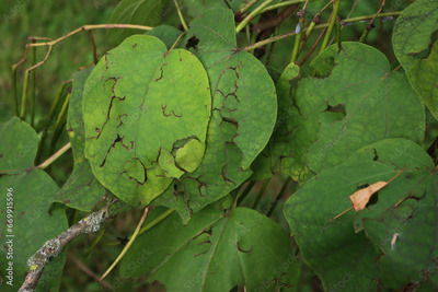 Paulownia Tomentosa tree with green leaves damaged by hailstones in the garden on summer