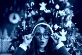 Portrait of surprised trendy housewife at modern home