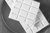 Bar of white chocolate. Making frozen strawberry cheesecake series.