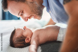 father on bedroom with his newborn baby son