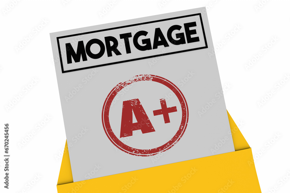 Mortgage Report Card Best Lender Borrow Loan Money Application Approval 3d Illustration