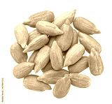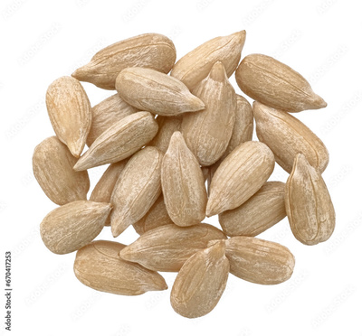 Peeled sunflower seeds isolated on white background, top view