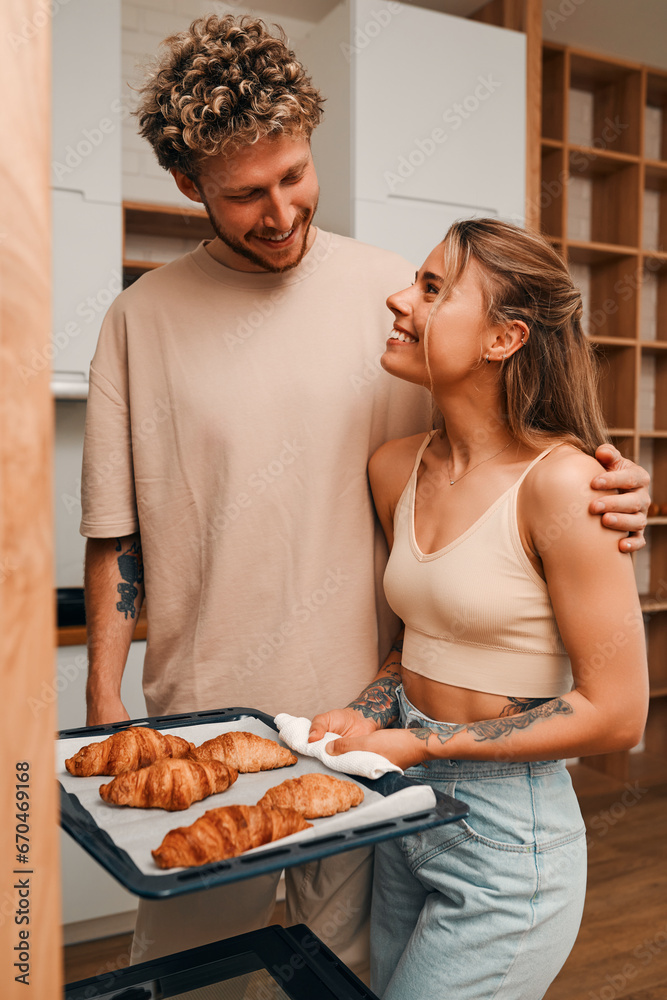Young couple in love spending time together at home