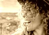 Side view portrait of overjoyed happy young adult woman smiling and having fu laughing in outdoor leisure activity alone with nature in background. Traveler and tourist. People outside enjoying life