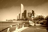 Downtown Abu Dhabi with sea and skyscrapers. Sunny summer in UAE