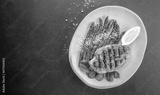 Grilled chicken fillet and vegetables. superfood concept. Healthy, clean eating. copy space, top view