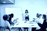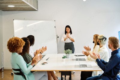 Coworkers applauding the presentation of a project of a colleague